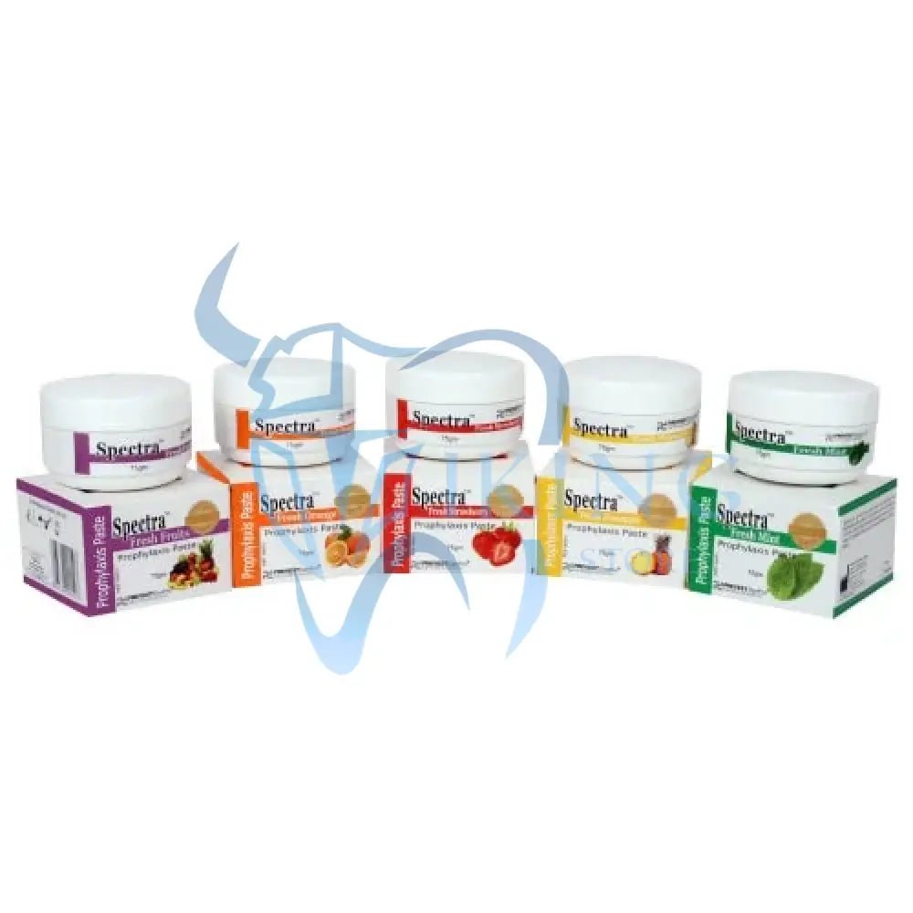Spectra is an abrasive paste used for polishing and fluoridation after scaling. Its mechanical action produces a smooth surface without eroding the dental enamel. It is also used for polishing fillings and removal of tobacco & food stains. Spectra Minty is mint flavored that produces a fresh, pleasant tingling sensation and relieves the irritation caused by the mechanical action of the scaling.